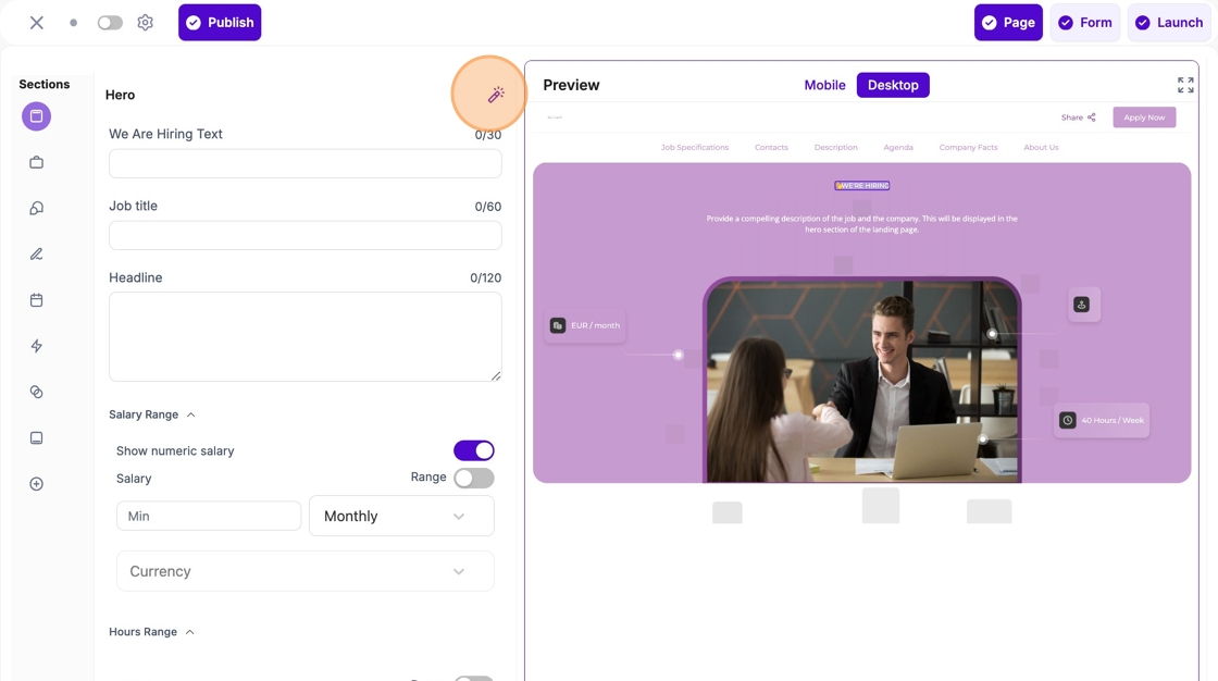 It’s the header of your job page, and the place where you grab attention instantly. A strong hero section sets the tone and makes your vacancy stand out.